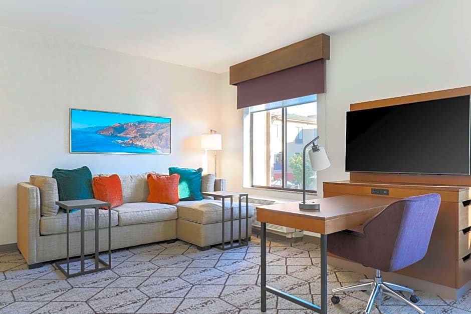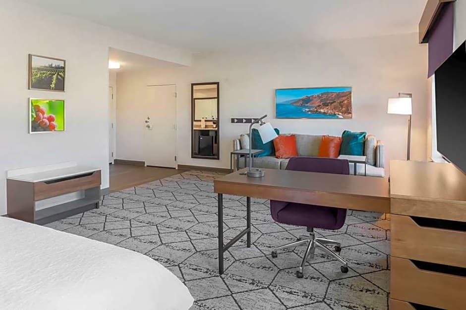 Any corresponding photo may not reflect the specific accessible room type or room feature. This mobility and hearing accessible, one-room, nonsmoking studio suite features one king sized bed , and an accessible bath tub. The suite also has a visual alarm and notification devices for the doorbell or door knock and incoming phone calls. The room features include a microwave, refrigerator, wet bar, comfortable soft seating, a HDTV, and easy to operate alarm clock/radio. The free high speed internet access will help you stay connected while on the road. If you prefer not to work at the desk, you can use the convenient lapdesk instead. You'll also enjoy the convenience of having a coffee maker with tea service and iron/ironing board in your room.
